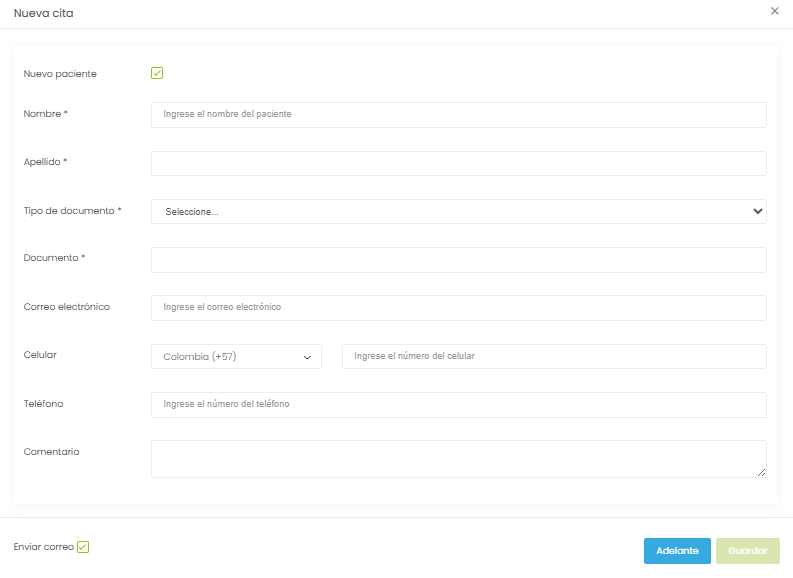 * Los pacientes que no estén creados en el sistema pueden ser agendados de forma rápida en la