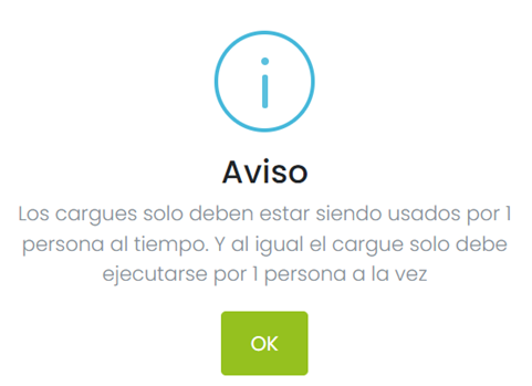 ingresamos a la opción “Cargas” el sistema enviara una alerta informando que el
