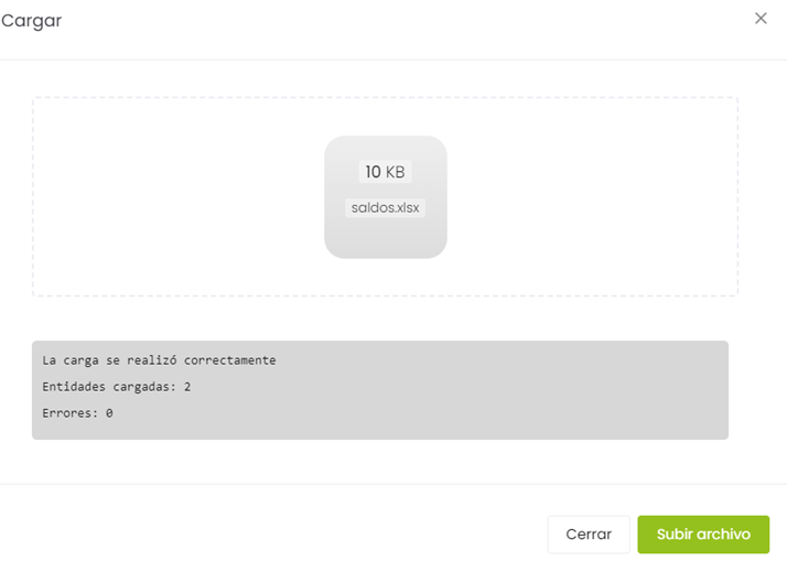 aparecerá un mensaje con la cantidad de registros cargados correctamente, luego