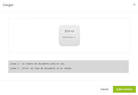 archivo se encuentre diligenciado correctamente y el cargue allá sido efectivo