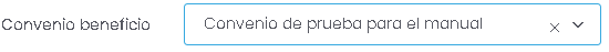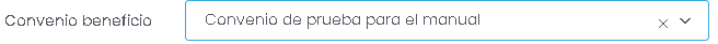 - En el campo "Convenio beneficio", vamos a seleccionar el que creamos.