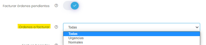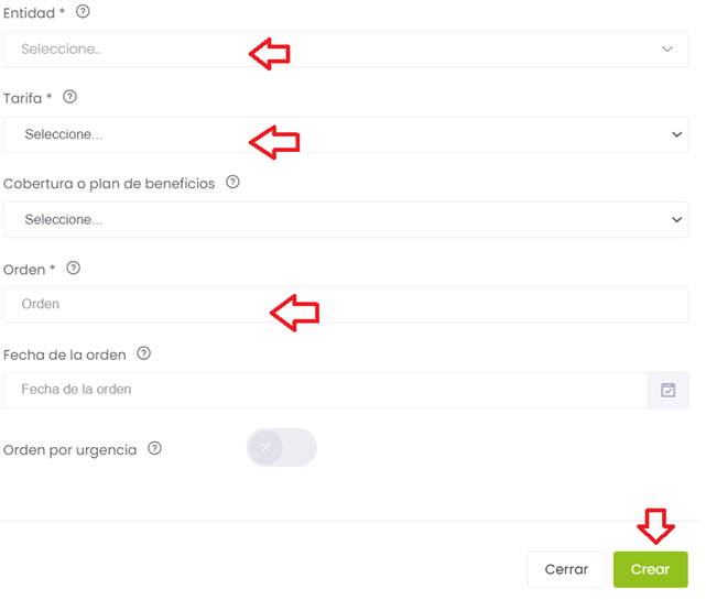 Orden por urgencia: En caso de que sea una orden por urgencia activar el