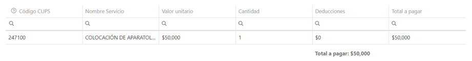 4. Marcar la casilla de los procedimientos que va a pagar el