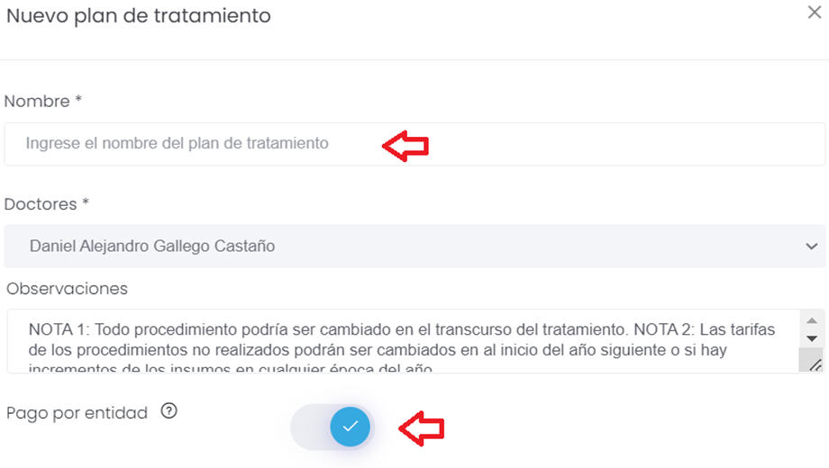 3. Una vez creado el plan de tratamiento podemos proceder a