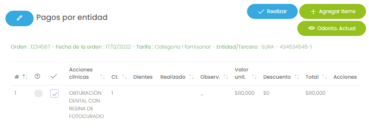 1. Agregar los ítems (procedimientos, servicios o consultas) al plan de tratamiento del paciente, desde la opción