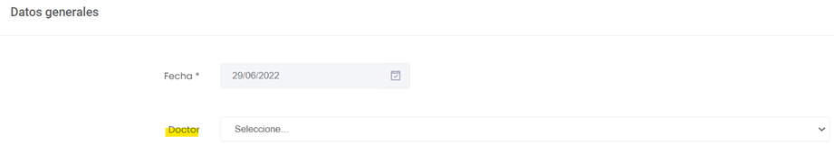 2. En la sección "Datos generales" podemos seleccionar el Doctor