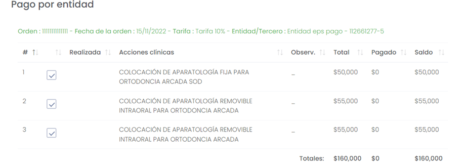 poder emitir la factura a la entidad se debe encontrar realizado el item en el plan de tratamiento y efectuado los valores que cubre el paciente(tarifa copago).
