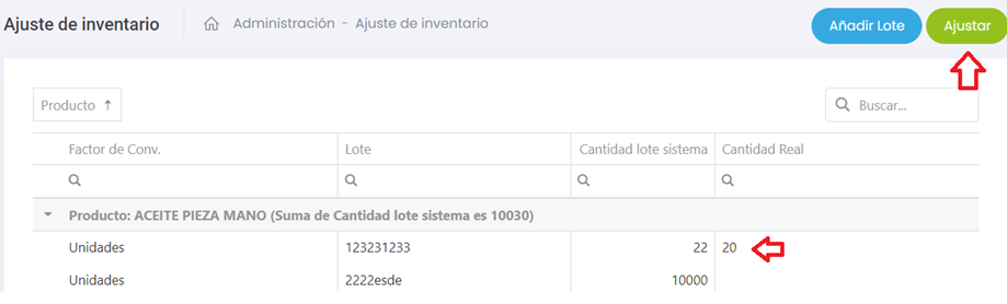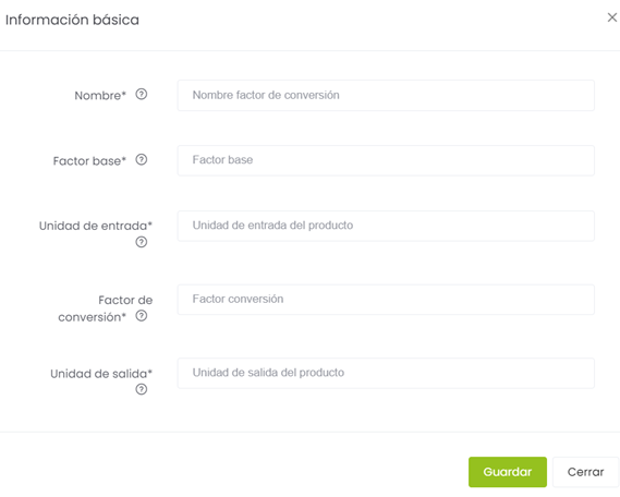 Factor de conversión: Indica por cada unidad de entrada, cuantas unidades de salida o consumo llegarán. Solo se pueden ingresar números.