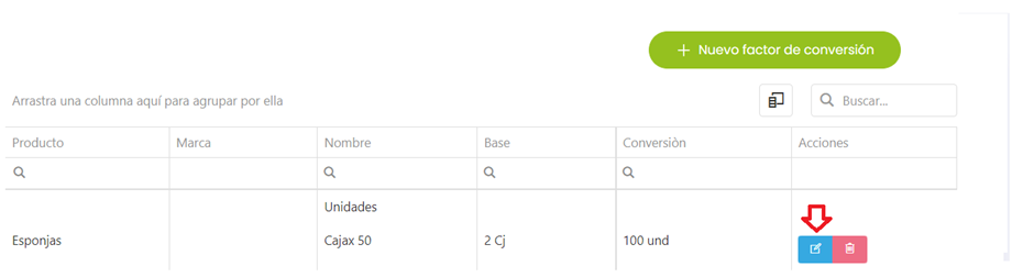 crear un factor de conversión debemos seleccionar el botón verde “Nuevo factor