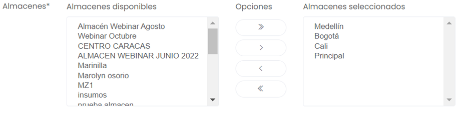 el almacén a usar desde la lista desplegable, luego hacer clic en el botón