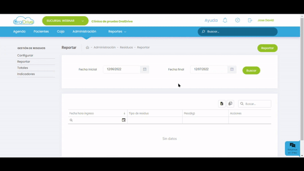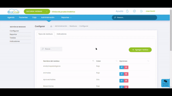 Módulo Administración > opción Residuos