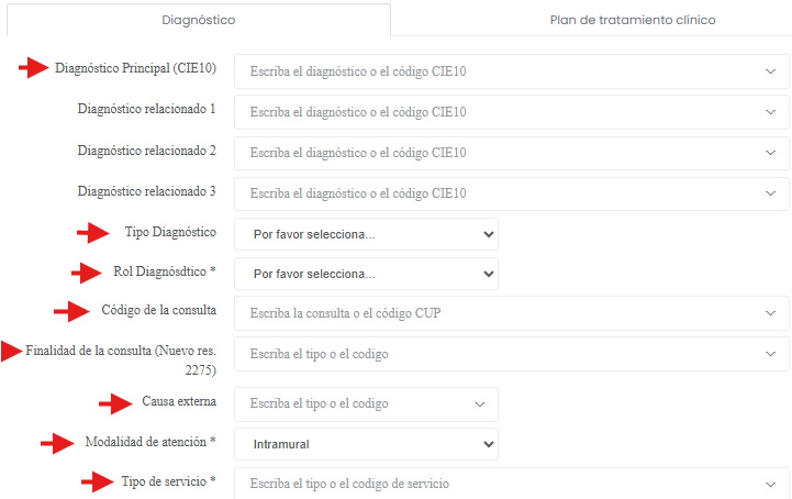 Si el código CUPS agregado a la plantilla diagnóstico no corresponde al que se agrego al plan de tratamiento no registrará información para asociar la consulta médica.