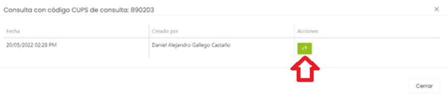 5. Si el código CUPS de la consulta que creamos inicialmente en la opción “Doc. Clínicos” corresponde al código CUPS del ítem del plan de tratamiento, el sistema le permitirá asociarlo y marcar como realizado haciendo clic en el botón verde “Asociar consulta médica”.