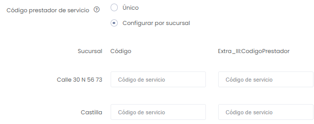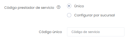 3. En este mismo formulario buscar el campo "Código prestador de servicio" y digitar en la opción "Único" el código de 12 dígitos con el que se encuentra habilitado como profesional independiente ante el ministerio de salud, hay algunos profesionales que se encuentran habilitados como profesional independiente pero con un código por sucursal, elija según corresponda y digite la información. Ejemplo: