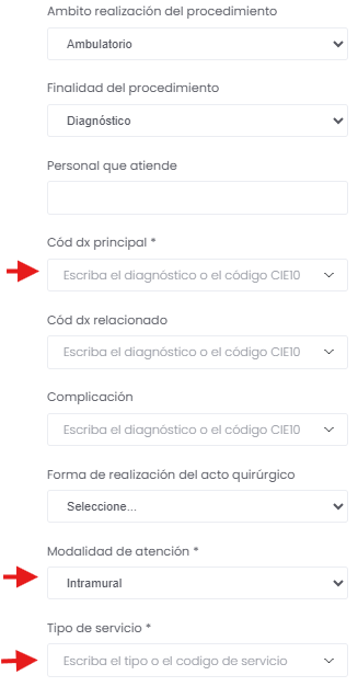 - Genera RIPS: Se debe marcar la casilla si se ingreso un código cups en el campo "Código" y se requiere generar RIPS para ese servicio.