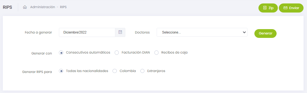 - Los RIPS se pueden generar en el software por consecutivos automáticos, facturación DIAN, recibos de caja.