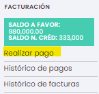 1. En la sección "Facturación" de la historia clínica del paciente, ingresamos a la opción "Realizar pago" ubicada en el menú izquierdo.