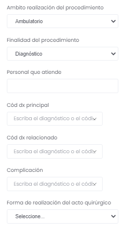 Al lado izquierdo nos encontraremos con los siguientes campos, los cuales son opcionales, pero se deben diligenciar en caso tal de que aplique alguno y también alimentaría el informe de RIPS