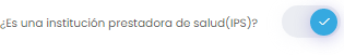 2. En la parte inferior encuentra de último el campo "¿Es una institución prestadora de salud(IPS)?" active el flag y guarde los cambios desde la parte inferior o superior derecha.
