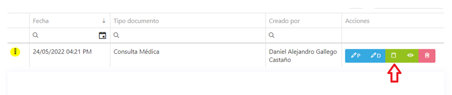 1. Debe ingresar a la opción “Doc. clínicos” ubicada en la parte posterior izquierda, luego hacer clic en el botón “Nueva consulta” diligenciar las plantillas que se encuentran allí, guardar cambios.