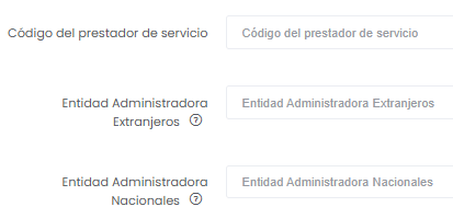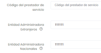 Para los campos "Entidad Administradora Extranjeros" y "Entidad Administradora Nacionales" le sugerimos consultar con su habilitador si debe diligenciar estos campos y que debe ingresar allí, ya que solo aplica para IPS y no en todos los casos es igual.