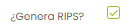 2. Buscar la casilla "¿Genera RIPS?" marcarla así